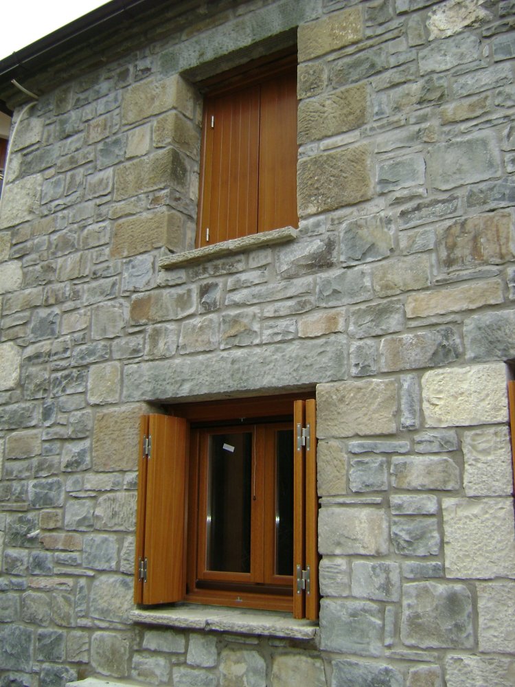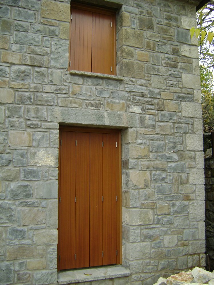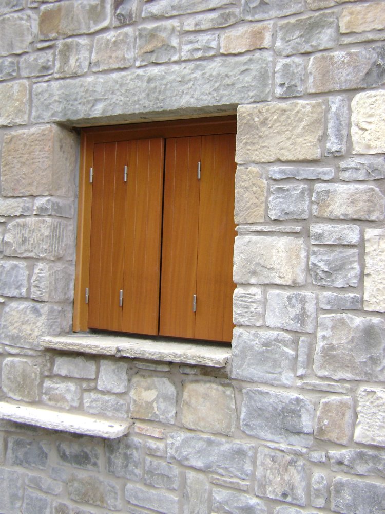 Παράθυρο με πατζούρι 4φυλλο τύπου κάθετο ραμποτέ από ξυλεία Μεράντι σε βερνίκι.